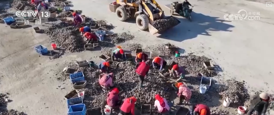 一大早,青島紅島漁港一派繁忙景象。漁船滿載著層層疊疊的牡蠣靠岸,工人們迅速進行分揀、過秤、裝箱。