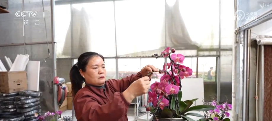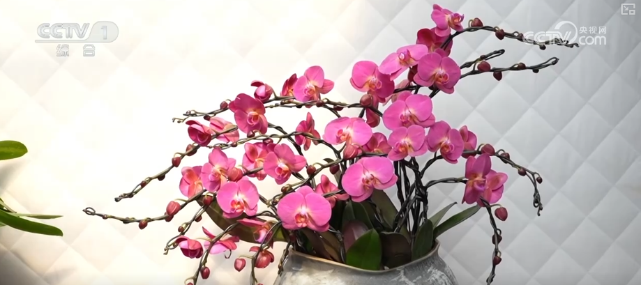 這是花藝師從眾多蝴蝶蘭中,挑選出枝干挺韌的株型作為“骨架”,再用手工慢慢牽引、固定而成。除了蝴蝶蘭組合的奔馬造型,花枝飄逸的祥云造型,花開(kāi)成樹(shù)的羅漢松造型,都深受市場(chǎng)歡迎。