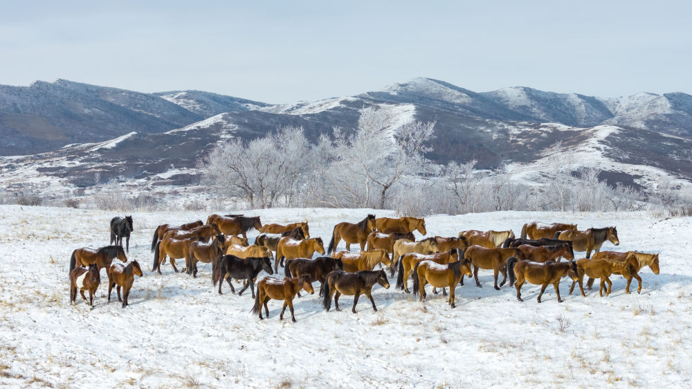 近日,在銀裝素裹的內蒙古克什克騰旗