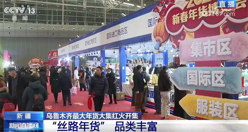 在烏魯木齊市年貨大集的現(xiàn)場,大家可以看到,采購年貨的市民非常多。這個大集面積達(dá)1.4萬平方米,攤位數(shù)量超過400家,產(chǎn)品種類也特別豐富。
