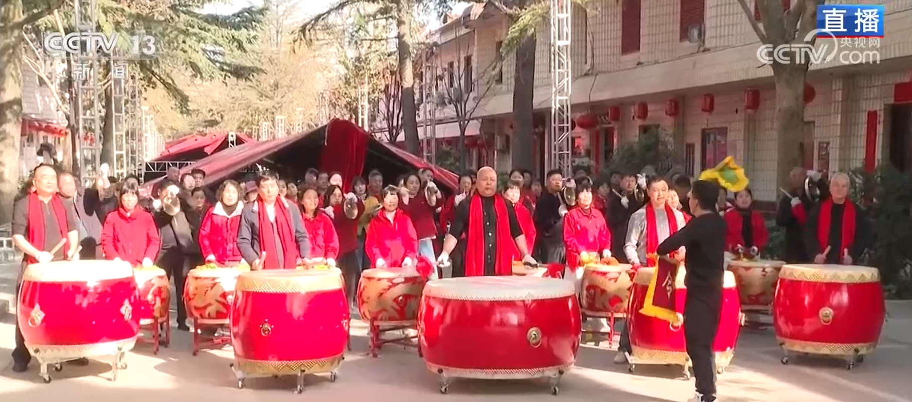 總臺(tái)記者 張恩雨:此刻,我是在袁家村的村口,同時(shí)也是村里百人鑼鼓隊(duì)表演的現(xiàn)場。在陜西關(guān)中農(nóng)村地區(qū),每年過年每個(gè)村子都會(huì)有這樣的鑼鼓表演,村民們告訴我,鑼鼓聲一響,年就到了。大家可以看到,我身后的鑼鼓隊(duì)隊(duì)員們是激情昂揚(yáng)、氣勢如虹。這些鏗鏘有力的鼓點(diǎn),正是關(guān)中地區(qū)非常有名的曲目《秦漢戰(zhàn)鼓》,沒有繁復(fù)的花腔,而是重在力量和氣勢。特別值得一提的是,這支隊(duì)伍里年齡最大的已經(jīng)75歲,最小的只有26歲,而且所有人都是零基礎(chǔ)的村民,僅僅集中學(xué)習(xí)了10來天,就呈現(xiàn)出了今天這樣的氣勢。