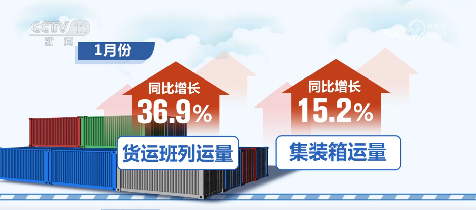 物流產(chǎn)品供給優(yōu)質(zhì)高效。1月份,貨運(yùn)班列運(yùn)量同比增長(zhǎng)36.9%;集裝箱運(yùn)量同比增長(zhǎng)15.2%;鐵水聯(lián)運(yùn)量完成155.5萬(wàn)標(biāo)箱,同比增長(zhǎng)15.3%,有力支持建設(shè)全國(guó)統(tǒng)一大市場(chǎng)。