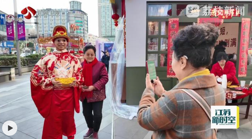 荔枝新聞中心記者王敏說(shuō):“在南京中央商場(chǎng)廣場(chǎng)前的時(shí)光長(zhǎng)廊內(nèi),不僅可以得到來(lái)自財(cái)神的祝福,還能喝到網(wǎng)紅韓阿姨親手做的手沖咖啡,幸福感拉滿!”