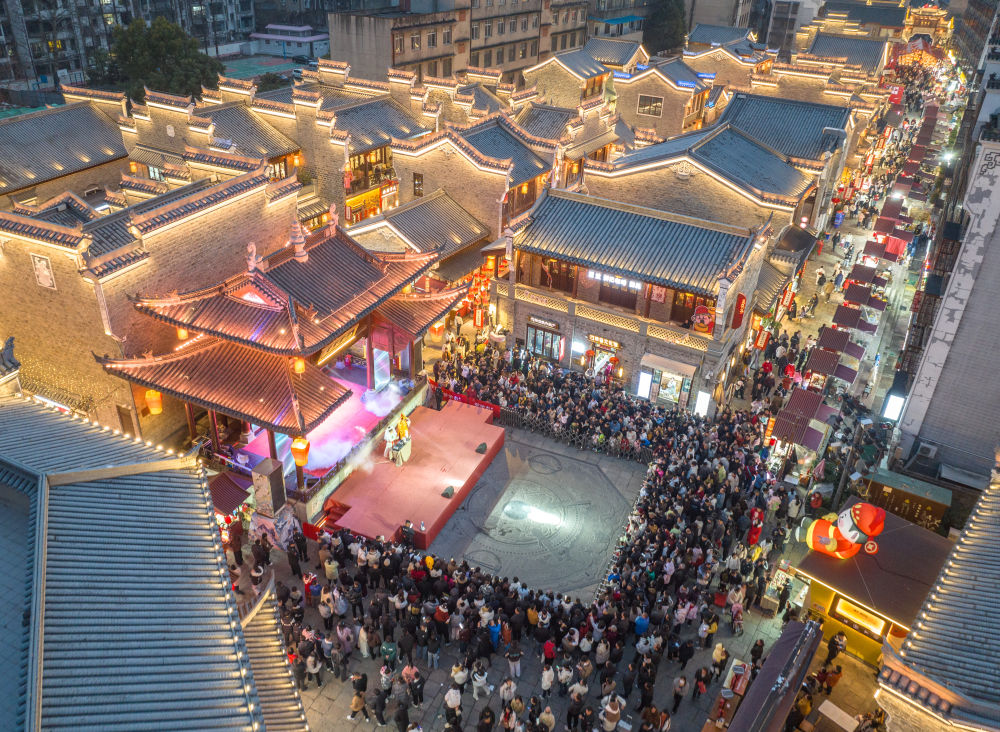 春節(jié)期間,湖北省襄陽(yáng)古城管家巷的傳統(tǒng)文化表演。新華社發(fā)(楊東攝)