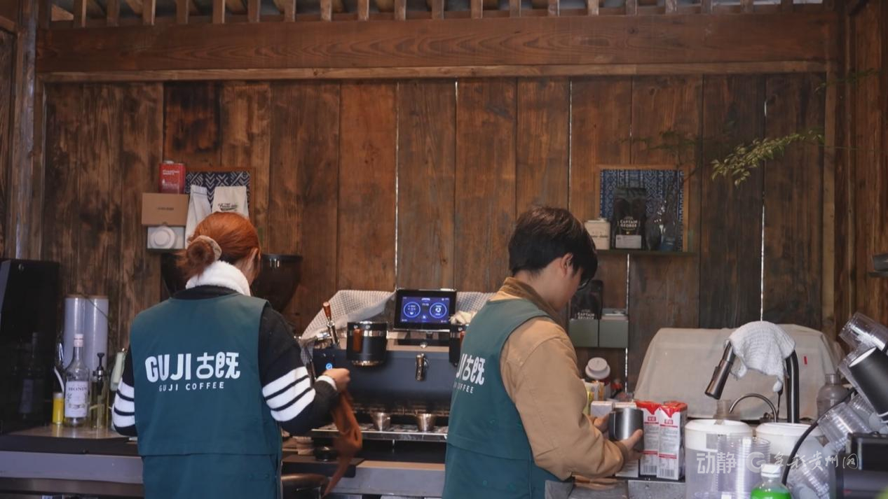 村民胡慧琴在家門口當(dāng)上咖啡廳店員,包吃包住,工作愜意;