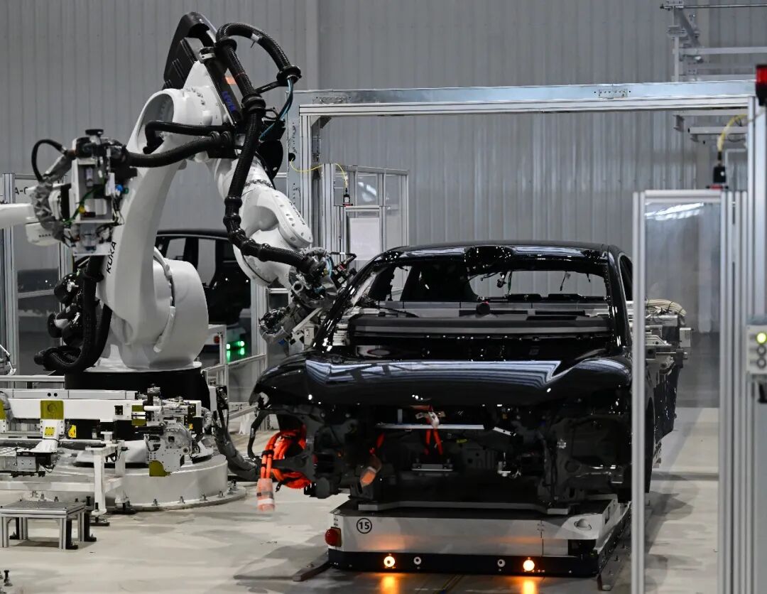 圖為記者在安徽合肥市新橋智能電動汽車產(chǎn)業(yè)園蔚來第二工廠拍攝的新能源汽車生產(chǎn)線。新華社記者周牧攝