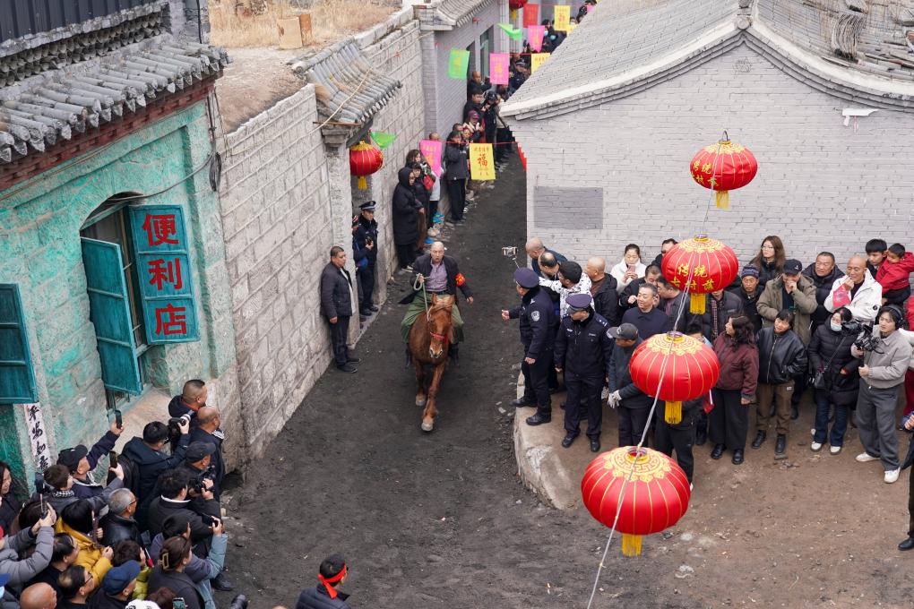 3月4日,農(nóng)歷正月十六,這個距離娘子關(guān)僅6公里的小山村,迎來了一年中最熱鬧的時刻,村中那條長約400米、寬不足4米的青石古巷上,里三層外三層擠滿了人。沿路民房的臺階上、門檻上,甚至屋頂上,都早已站上了不請自來的看客,主人家卻也毫不在意:“今天這個大日子,大家一起熱鬧熱鬧!”