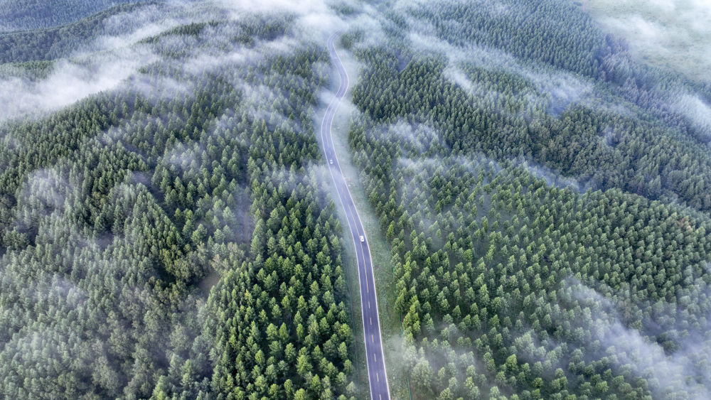 2024年7月26日拍攝的塞罕壩國家級(jí)自然保護(hù)區(qū)景色(無人機(jī)照片)。夏日清晨,位于河北省承德市的塞罕壩國家級(jí)自然保護(hù)區(qū)滿目青翠,浩瀚林海壯美如畫。新華社發(fā)(王立群 攝)