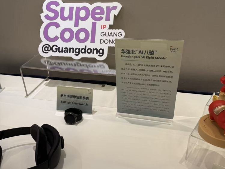 在廣東代表團(tuán)開放團(tuán)組活動(dòng)會(huì)場(chǎng)外的走廊里,當(dāng)?shù)囟嗉移髽I(yè)展示廣東特色美食,以及眾多深受全球消費(fèi)者喜愛的智能產(chǎn)品。其中就有被譽(yù)為“華強(qiáng)北AI八駿"的AI產(chǎn)品,這是由全球消費(fèi)者實(shí)打?qū)崱百I出來”的榜單好物,涵蓋無人機(jī)、機(jī)器人、AI眼鏡、AI學(xué)習(xí)機(jī)與音響等,此外還有人形機(jī)器人手辦、AI吉他、AI娃娃等最新科技產(chǎn)品,以眼見為實(shí)的產(chǎn)品展現(xiàn)廣東經(jīng)濟(jì)發(fā)展蓬勃活力,吸引大批外國記者拍照、采訪與試用。