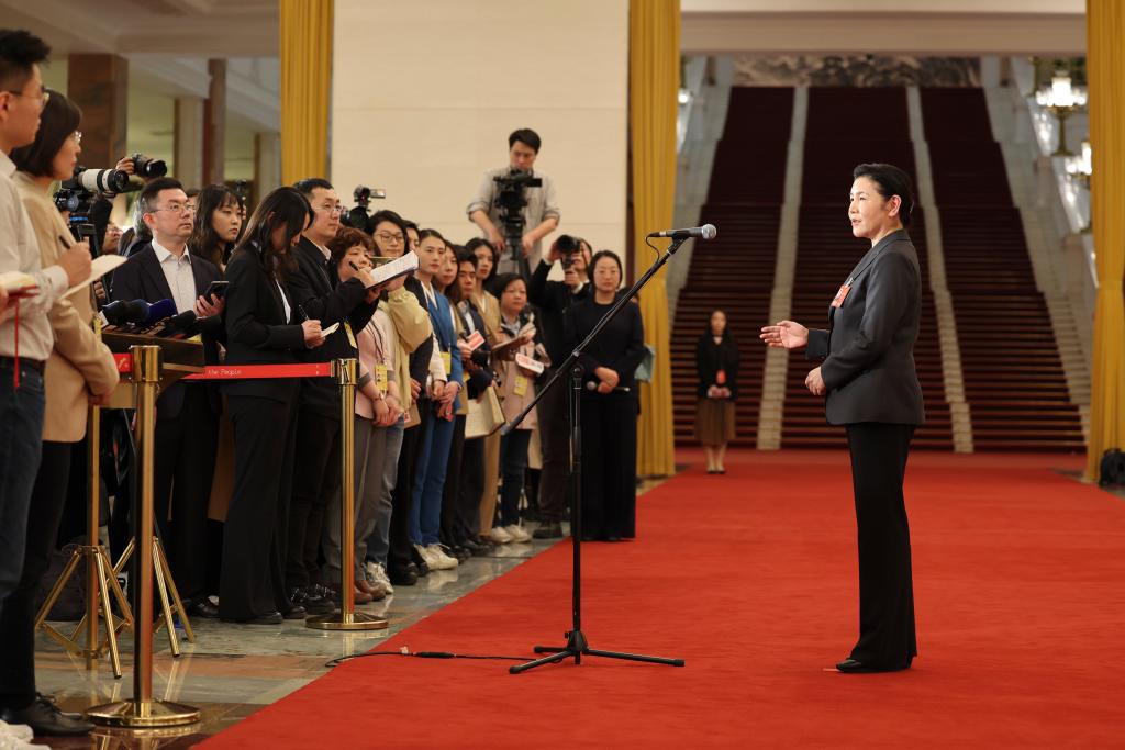 3月12日,第十四屆全國人民代表大會第四次會議第三場“部長通道”集中采訪活動(dòng)在北京人民大會堂舉行。這是司法部部長賀榮接受媒體采訪。新華社記者 金立旺 攝