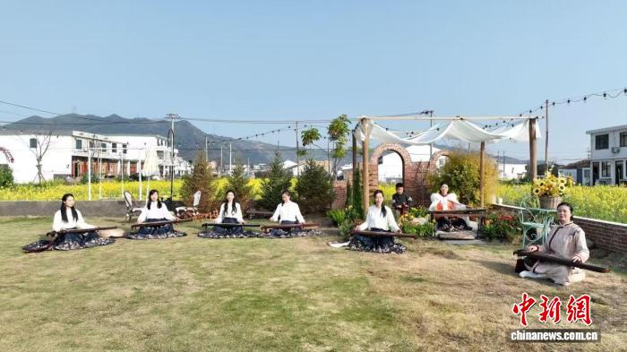 3月,浙江龍港,花田間上演古琴演奏?!〗鹁?攝