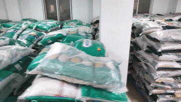 3月16日,在北大荒集團黑龍江格球山農(nóng)場有限公司農(nóng)業(yè)科技服務(wù)中心,工作人員在搬運配方肥料。新華社發(fā)(陸文祥 攝)