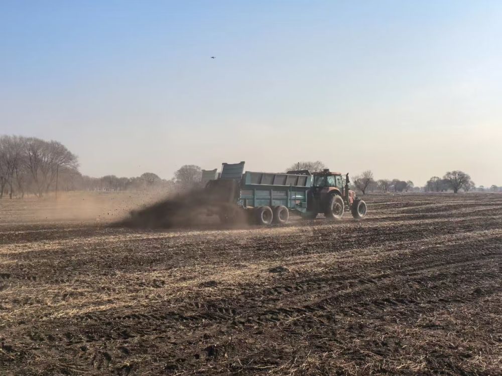 3月10日,扎賚特旗農(nóng)戶正在向黑土耕地拋撒農(nóng)家肥。(王群 攝)