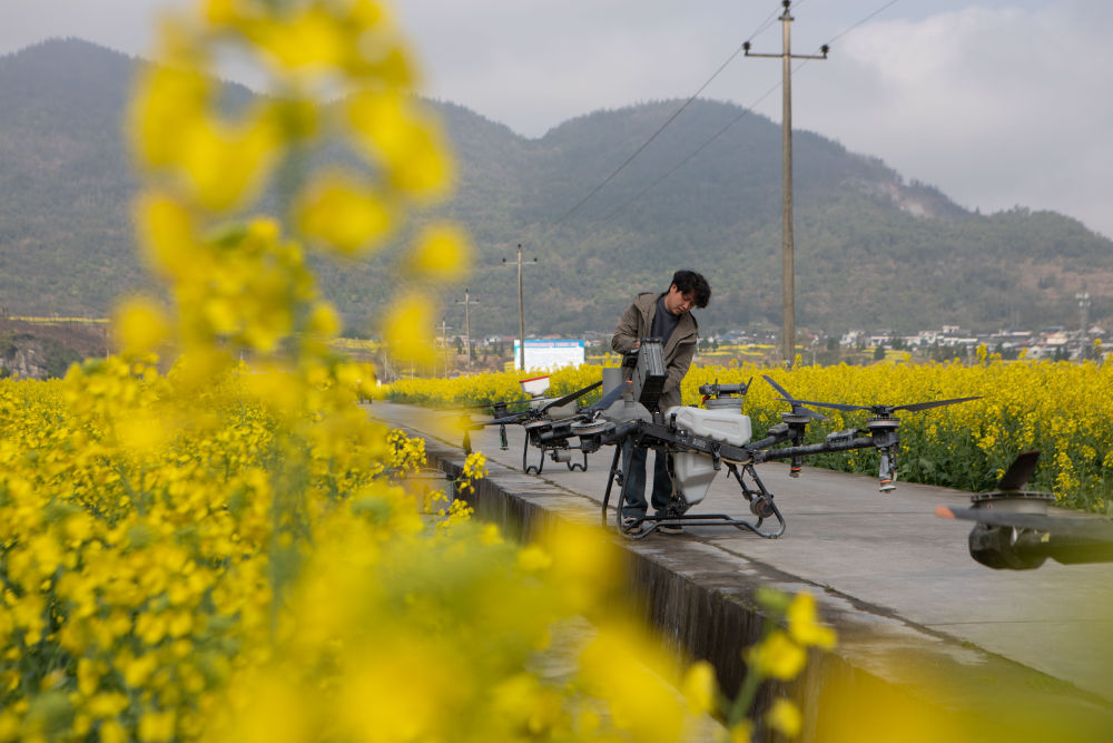 在重慶市秀山土家族苗族自治縣,種植戶操作3臺植保無人機開展“一噴多促”田間管理作業(yè),利用無人機搭載的高光譜和多光譜鏡頭,通過遙感技術(shù)為油菜生長“把脈問診”。