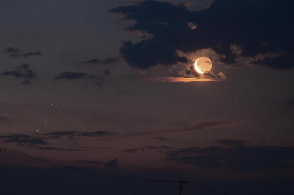 “新月抱舊月”是一種由地球反射太陽光至月球暗面形成的天文現(xiàn)象,表現(xiàn)為明亮月牙與暗淡月面同時可見,這種有趣的天文現(xiàn)象也被稱為地照。