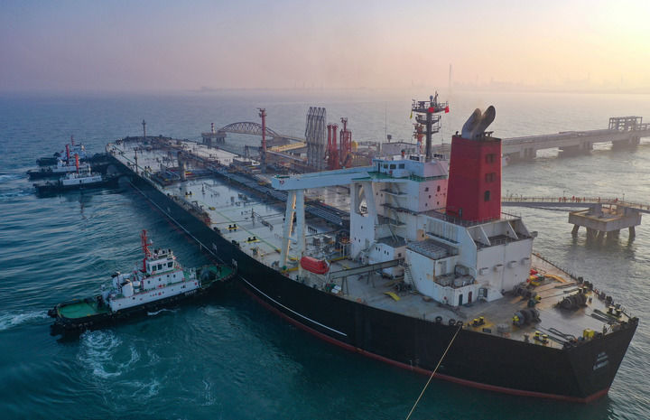 2025年12月18日,一艘裝載著17.9萬噸石化原輔料的船舶泊入國投洋浦油儲碼頭30萬噸級原油泊位(無人機照片)。這是海南自由貿(mào)易港正式啟動全島封關(guān)后洋浦港口岸第一批通關(guān)的“零關(guān)稅”石化原輔料。