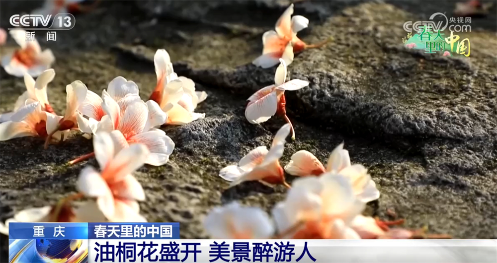 榮昌區(qū)古佛山的半山觀景平臺(tái)周邊是野生油桐的集中分布區(qū),從空中俯瞰,大片油桐花競(jìng)相綻放,開得格外繁盛。湊近了看,一簇簇白里透紅的花朵掛滿枝頭,花瓣溫潤柔美;微風(fēng)輕拂,輕盈的花瓣隨風(fēng)飄落,為山間小道鋪上一層潔白花毯。前來賞花的市民游客或駐足拍照、或穿行花間,盡情享受春日美好時(shí)光。