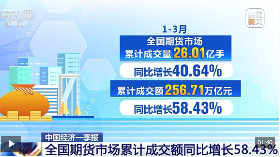 視頻丨1-3月全國期貨市場累計成交額同比增長58.43%