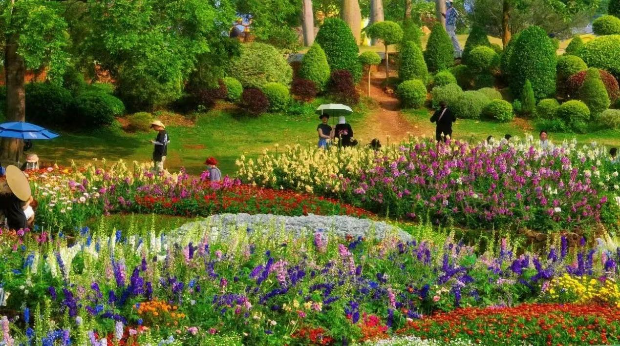 水生花園內(nèi),繁花綻放,吸引游客前來拍照打卡(央廣網(wǎng)發(fā) 南寧青秀山風(fēng)景名勝旅游區(qū)管理委員會供圖)