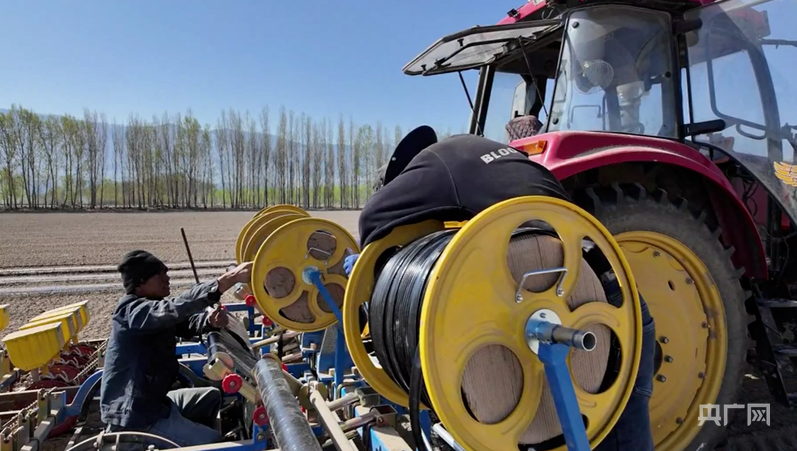 與傳統(tǒng)人工鋪膜相比,機(jī)械化作業(yè)優(yōu)勢(shì)盡顯。一臺(tái)農(nóng)機(jī)一天便能完成數(shù)十畝地的鋪膜、鋪滴灌帶、打孔全套作業(yè),效率是人工的3至5倍。這不僅大幅縮短了春播周期,更為后期洋蔥的高產(chǎn)優(yōu)收筑牢了堅(jiān)實(shí)基礎(chǔ)。特克斯縣喬拉克鐵熱克鎮(zhèn)農(nóng)機(jī)大戶焦富裕一邊專注地盯著農(nóng)機(jī)作業(yè),一邊說(shuō):“三臺(tái)機(jī)器在作業(yè),播種、鋪膜、滴灌帶一次性完成,一臺(tái)機(jī)器一天能種80至90畝?!?/p>