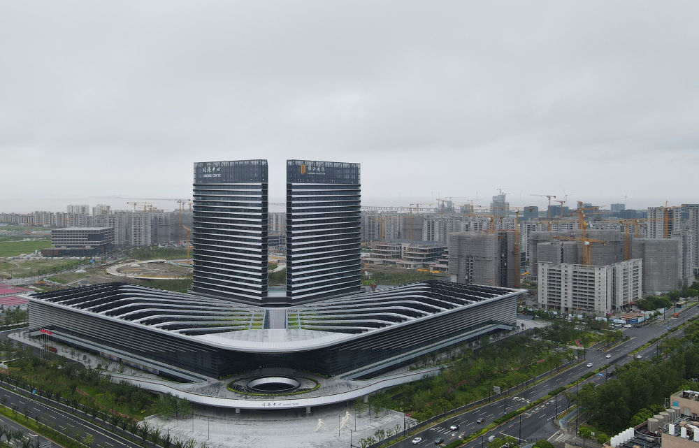 這是中國(上海)自由貿易試驗區(qū)臨港新片區(qū)滴水湖西島建設中的中銀金融中心大樓(無人機照片,2024年3月27日攝)。