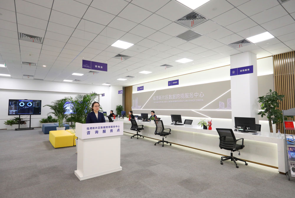 中國(上海)自由貿易試驗區(qū)臨港新片區(qū)數據跨境服務中心內景。該中心4月7日啟用運營,致力于為數據處理者提供全方位、全流程數據跨境服務,包括材料受理、業(yè)務咨詢等,在臨港新片區(qū)打造數據跨境流動的綠色通道(2024年4月9日攝)。