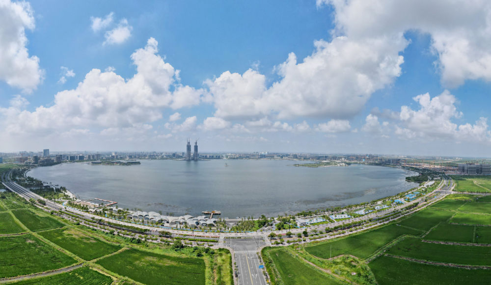 這是中國(上海)自由貿易試驗區(qū)臨港新片區(qū)滴水湖(無人機全景照片,2023年9月6日攝)。