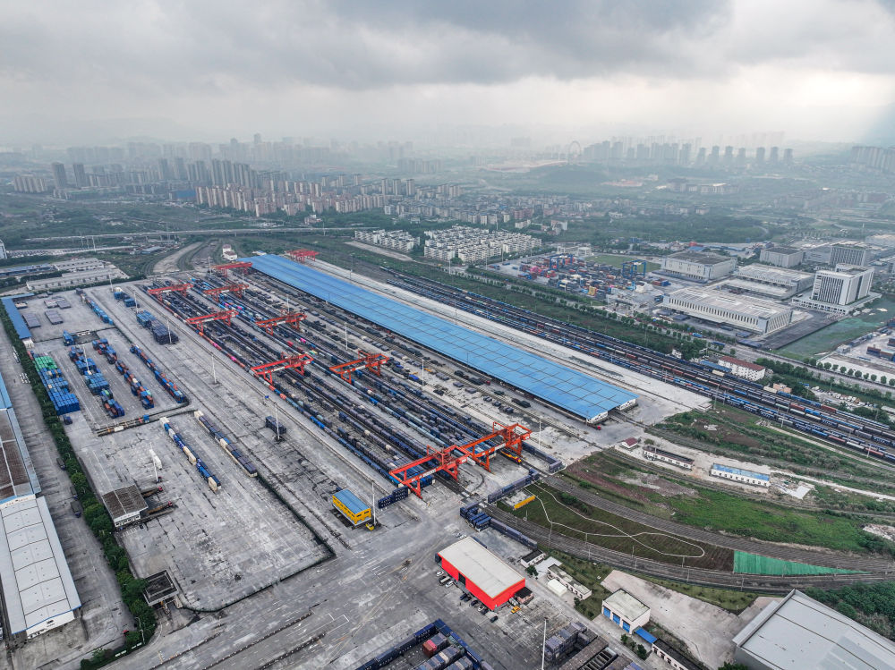 這是位于重慶國際物流樞紐園區(qū)的團結村中心站(2024年4月22日攝,無人機照片)。