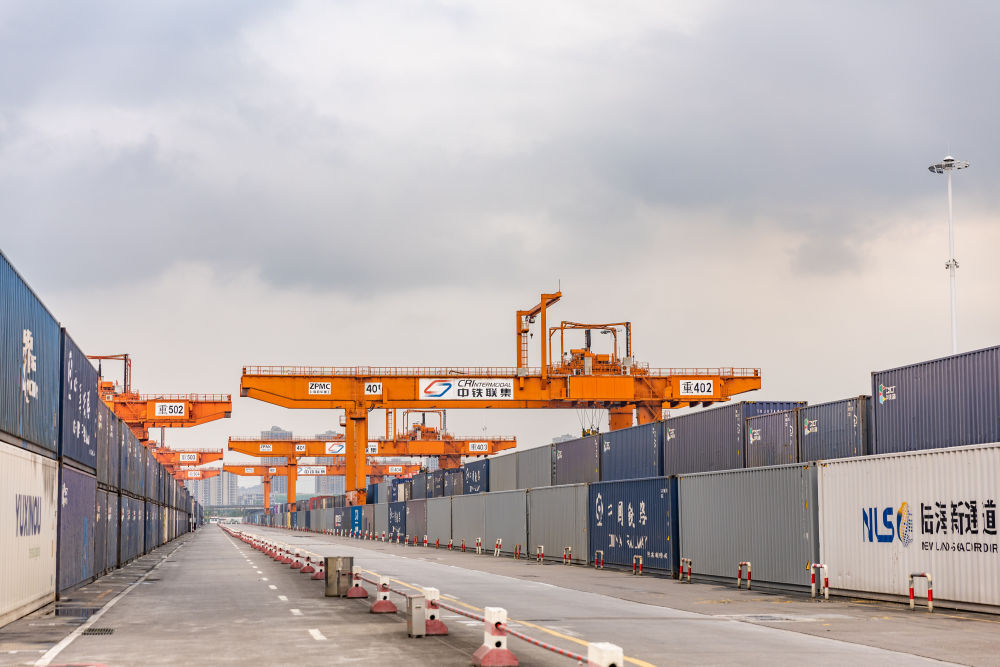 自重慶國際物流樞紐園區(qū)向南,西部陸海新通道直達廣西欽州港,“中國制造”在這里走向全球,來自全球的貨物又從這里進入中國市場。