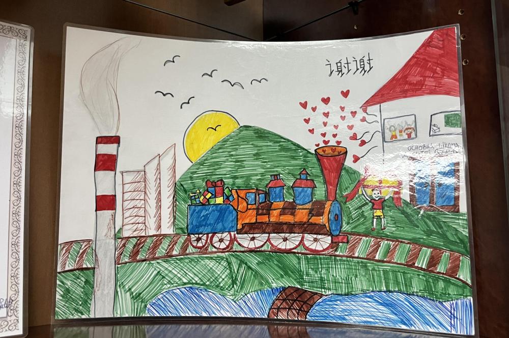在斯梅戴雷沃鋼廠辦公樓入口處,擺放著一摞廠辦期刊。每一期封底都是一幅鋼廠子弟或當?shù)匦W(xué)生的畫作。在孩子們眼中,鋼廠色彩斑斕:郁郁蔥蔥的山腳下,色彩鮮亮的火車頭在廠區(qū)內(nèi)穿梭,噴出“小愛心”;孩子們手持氣球,站在鋼廠援建的學(xué)校前,腳下開滿鮮花;塞中兩國員工肩并肩站在一起,兩國國旗和兩種文字的“謝謝”排列在一起。