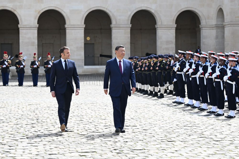 當?shù)貢r間5月6日下午,正在法國進行國事訪問的國家主席習近平在巴黎出席法國總統(tǒng)馬克龍舉行的隆重盛大歡迎儀式。新華社記者 謝環(huán)馳 攝