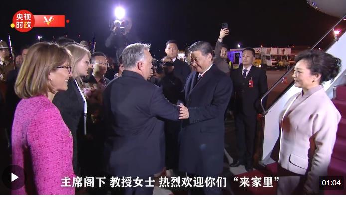 習(xí)近平乘坐的專機(jī)抵達(dá)布達(dá)佩斯國際機(jī)場時(shí),匈牙利總理歐爾班夫婦、外長西雅爾多等政府高級官員熱情迎接。歐爾班總理對習(xí)近平主席夫婦說,歡迎你們“來家里”,我們感到極大榮光。
