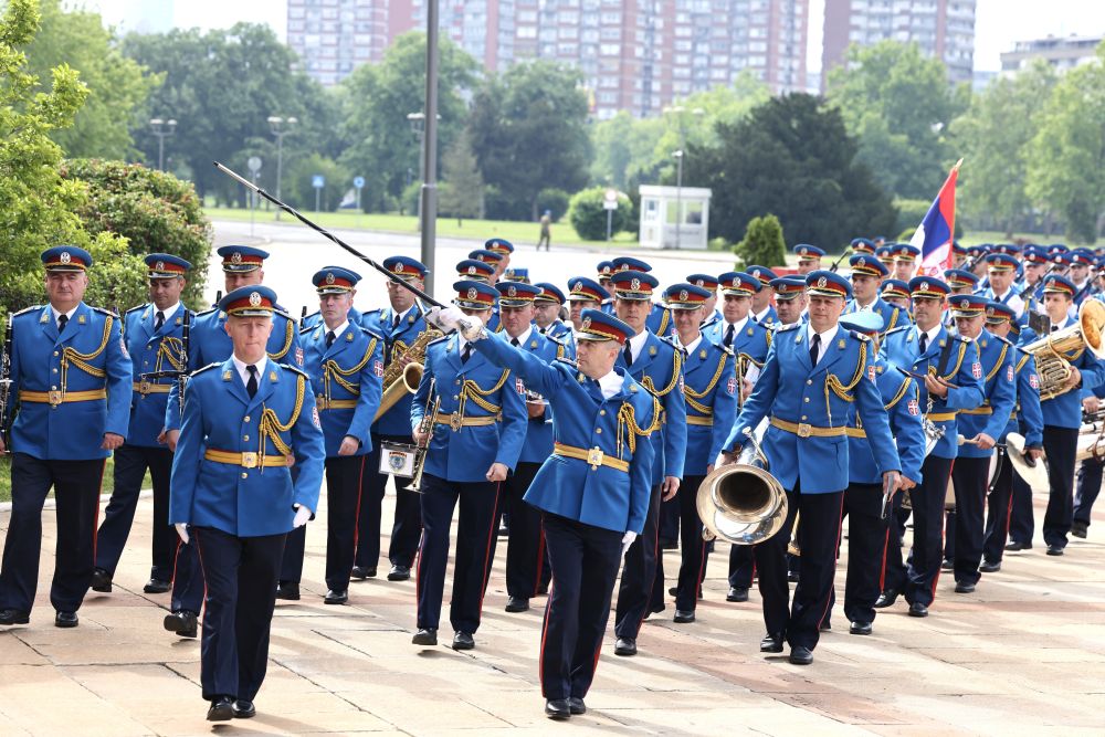 當(dāng)?shù)貢r間5月8日,國家主席習(xí)近平在貝爾格萊德出席塞爾維亞總統(tǒng)武契奇舉行的隆重盛大歡迎儀式。歡迎儀式在塞爾維亞大廈南廣場舉行。兩國元首共同登上檢閱臺,軍樂團奏響中塞兩國國歌,鳴10響禮炮。習(xí)近平在武契奇陪同下檢閱儀仗隊。