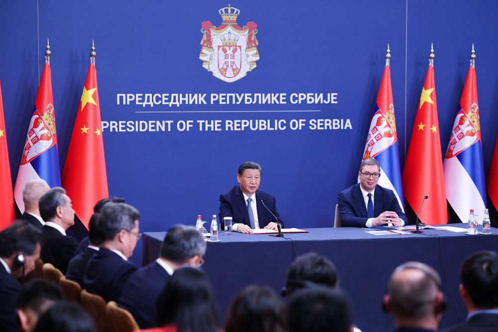 歡迎儀式后,國家主席習(xí)近平在貝爾格萊德塞爾維亞大廈同塞爾維亞總統(tǒng)武契奇舉行會談。