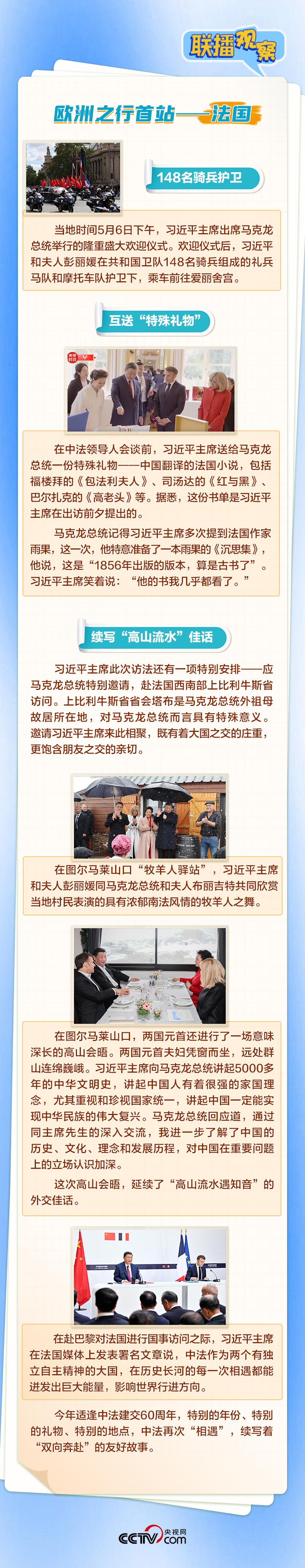 聯(lián)播+5月5日至10日,習(xí)近平主席對(duì)法國(guó)、塞爾維亞、匈牙利進(jìn)行國(guó)事訪問,這是習(xí)近平主席今年首次出訪,也是中國(guó)國(guó)家元首時(shí)隔5年再訪歐洲。