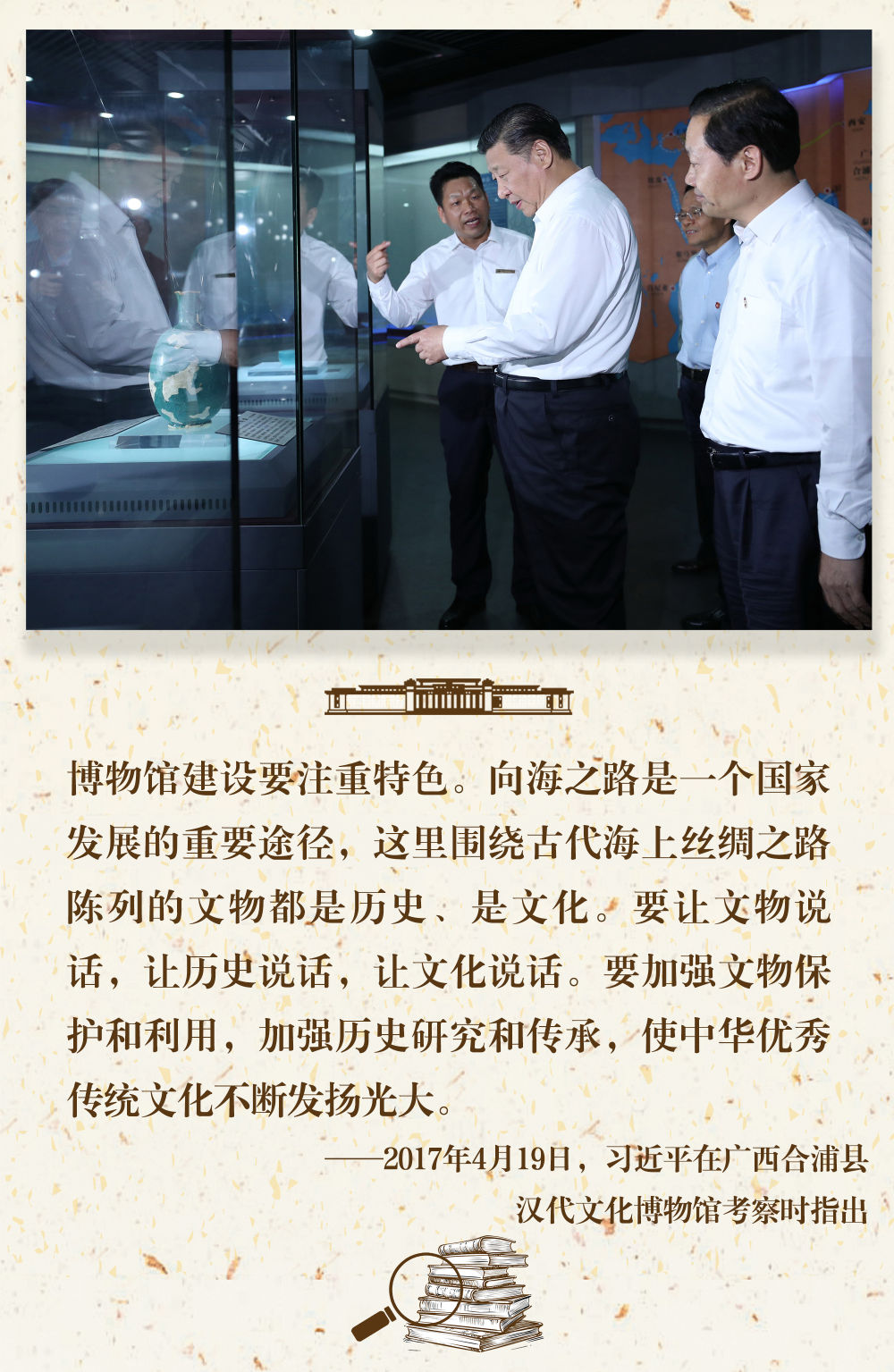 “一個(gè)博物館就是一所大學(xué)?!?。長期以來,習(xí)近平總書記十分關(guān)心博物館事業(yè)發(fā)展,多次在不同場合對發(fā)揮好博物館相關(guān)功能提出要求。
