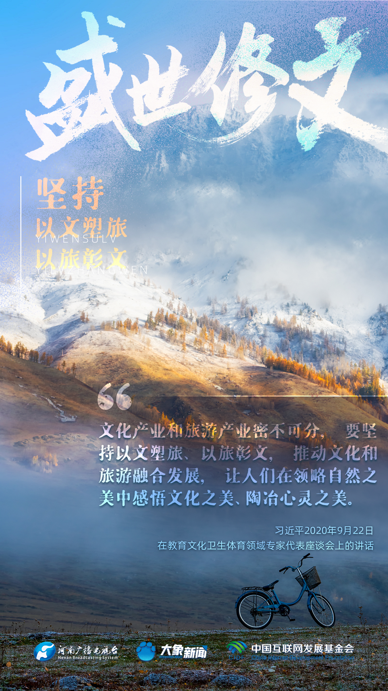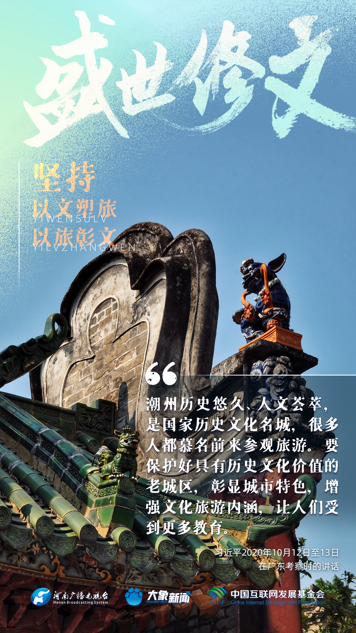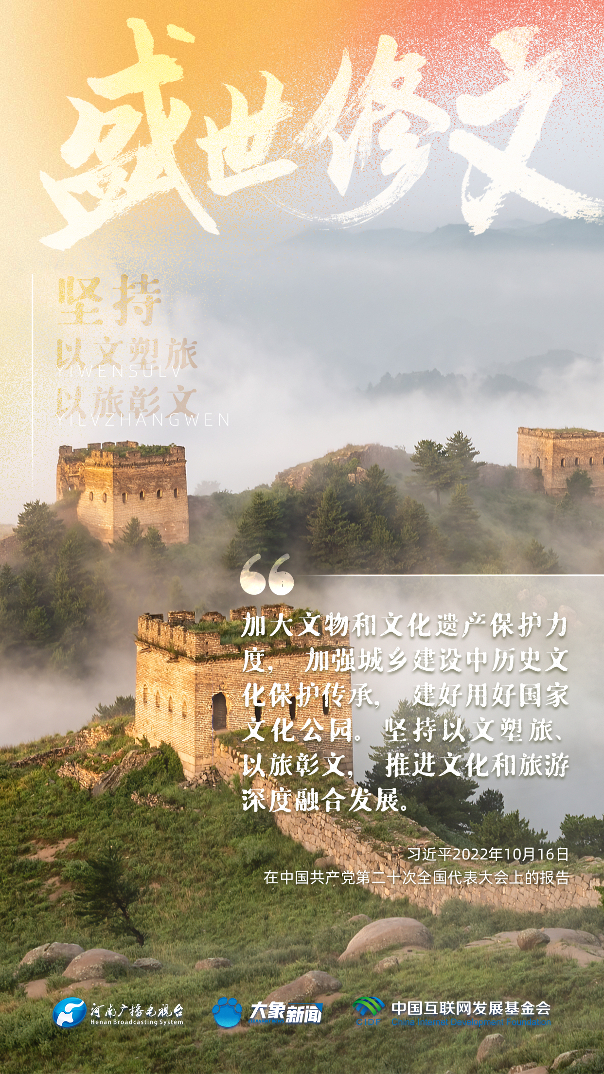 今天推出:習(xí)近平文化思想金句之《盛世修文|堅(jiān)持以文塑旅、以旅彰文》