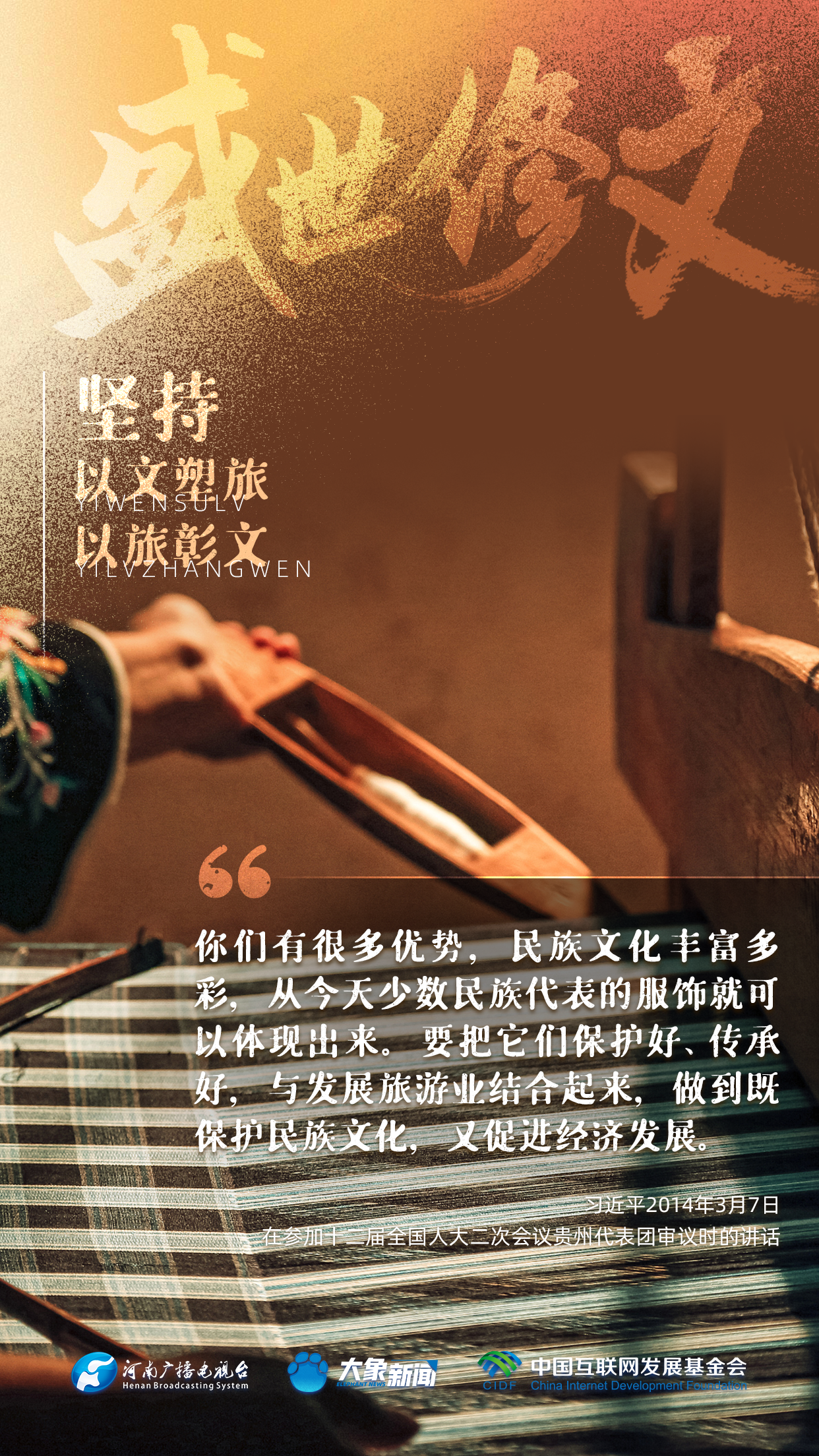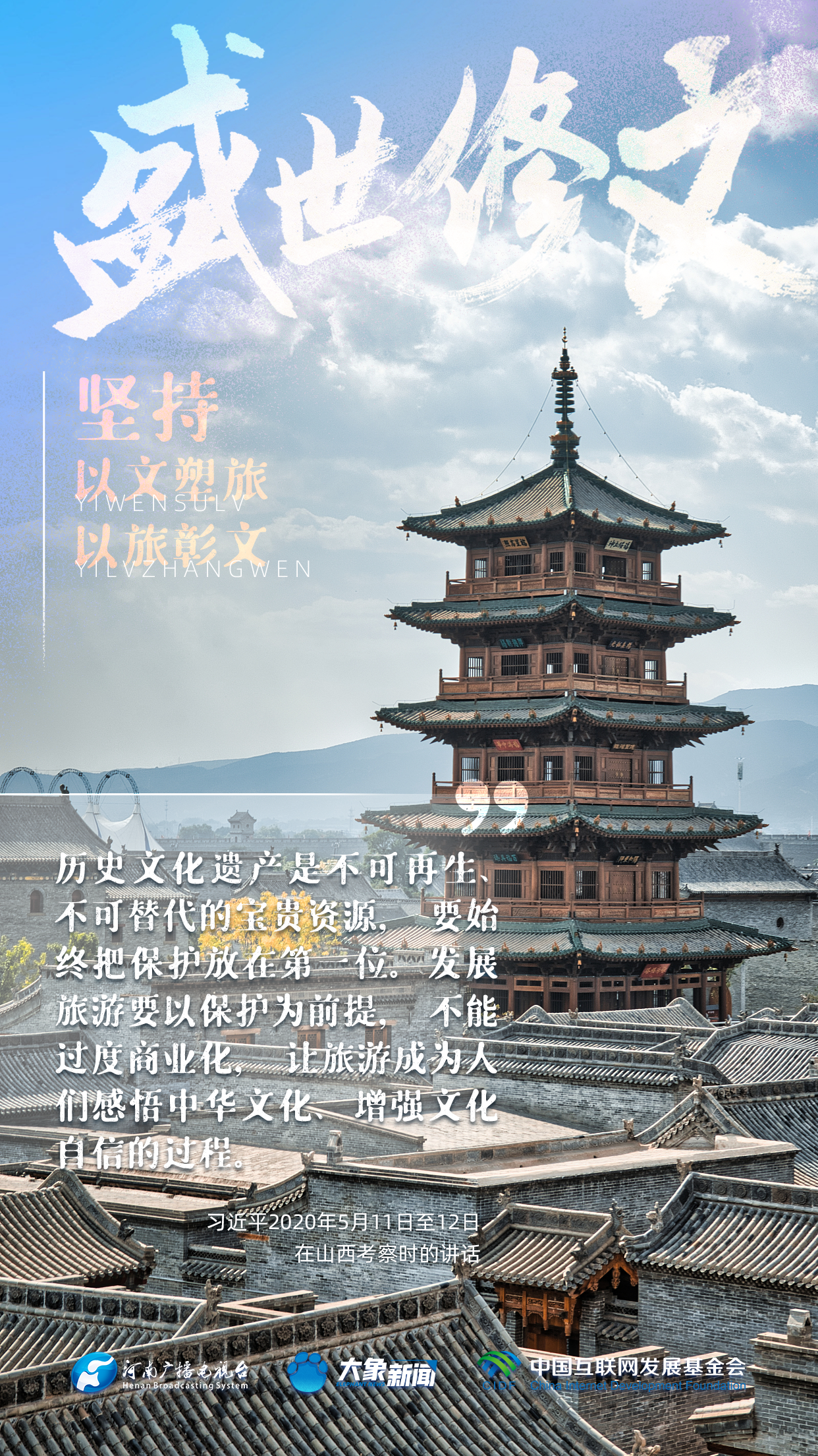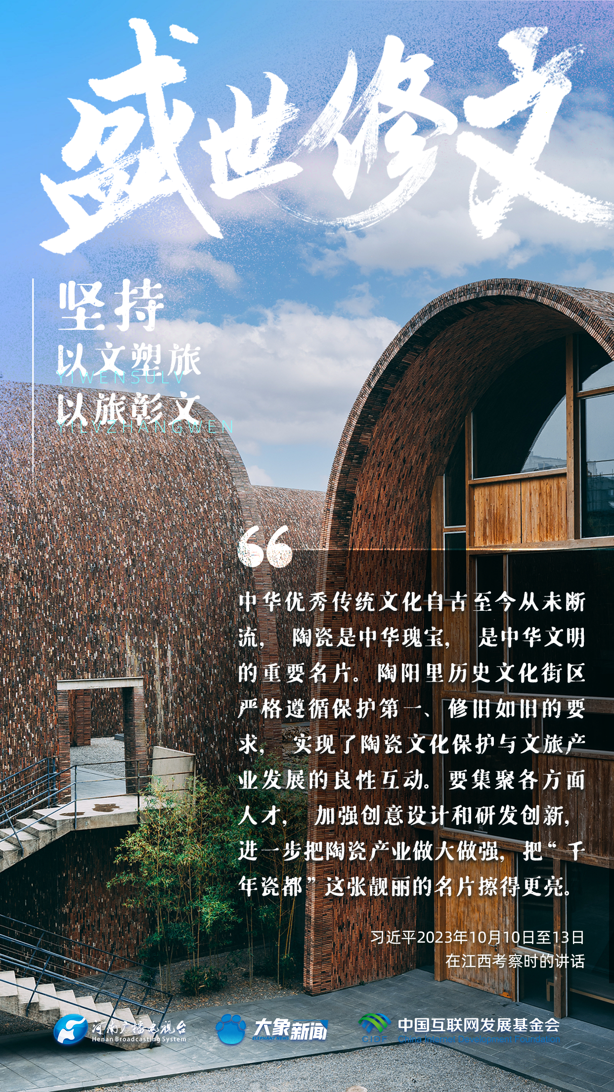 今天推出:習(xí)近平文化思想金句之《盛世修文|堅(jiān)持以文塑旅、以旅彰文》