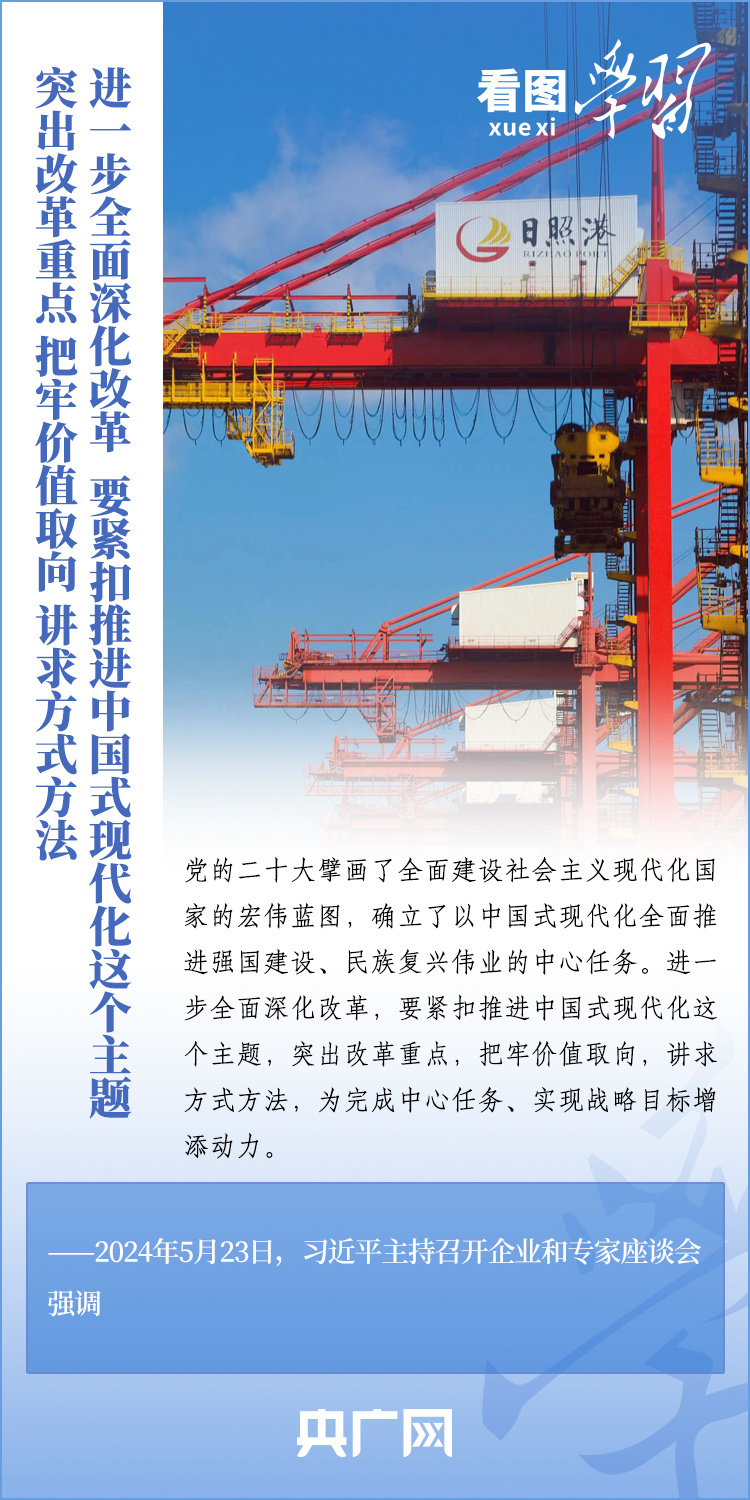 改革是發(fā)展的動力。5月23日,習(xí)近平總書記在山東濟南主持召開企業(yè)和專家座談會并發(fā)表重要講話??倳洀娬{(diào),進一步全面深化改革,要緊扣推進中國式現(xiàn)代化這個主題,突出改革重點,把牢價值取向,講求方式方法,為完成中心任務(wù)、實現(xiàn)戰(zhàn)略目標增添動力。一起來學(xué)習(xí)!