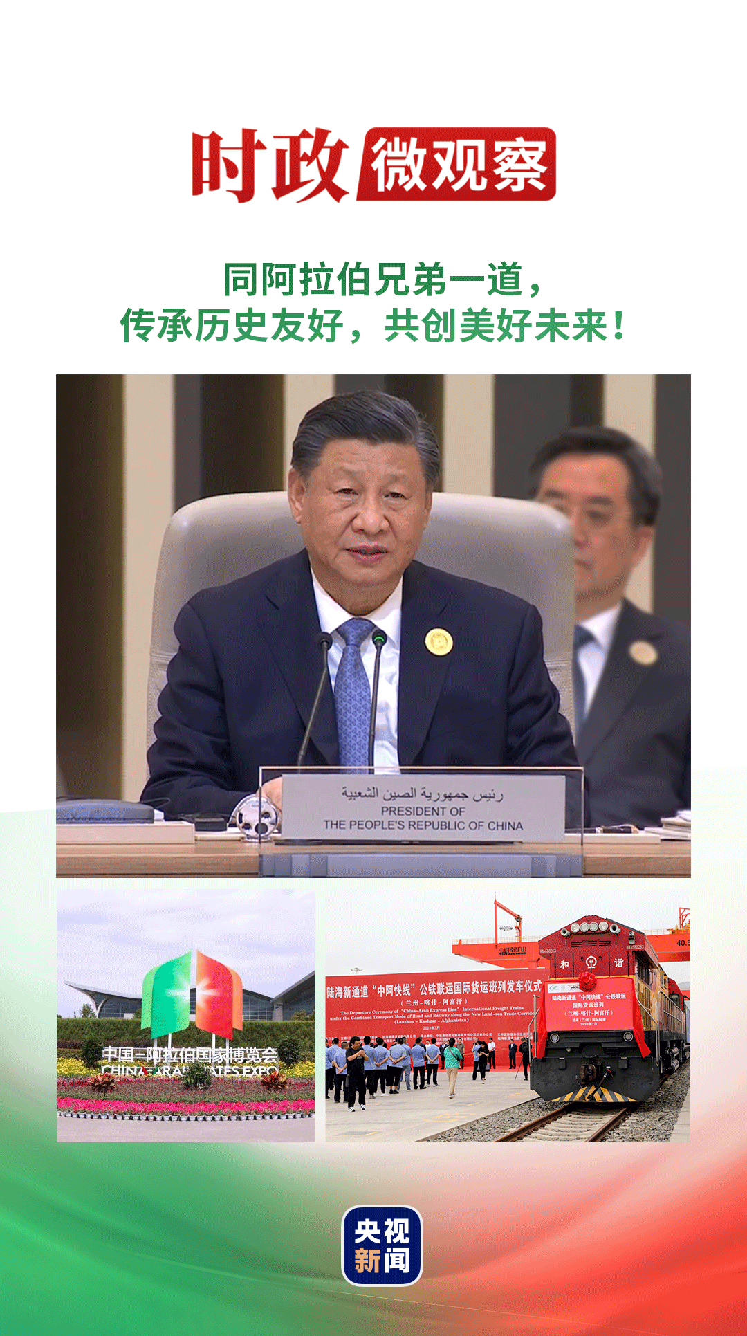 “著眼未來(lái),中方愿同阿拉伯國(guó)家一道,繼續(xù)弘揚(yáng)中阿友好精神,建設(shè)更高水平的中阿命運(yùn)共同體,為構(gòu)建人類(lèi)命運(yùn)共同體貢獻(xiàn)力量。”5月16日,習(xí)近平主席向第33屆阿拉伯國(guó)家聯(lián)盟首腦理事會(huì)會(huì)議致賀信時(shí)表示。