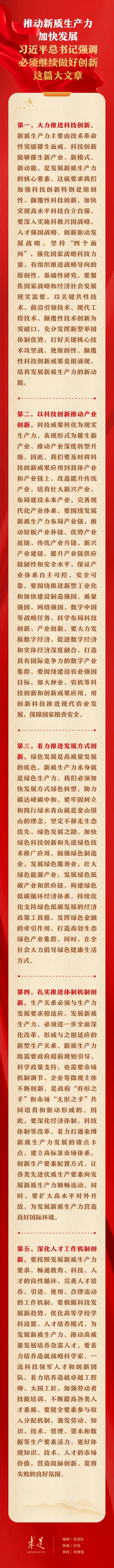6月1日出版的第11期《求是》雜志刊發(fā)習(xí)近平總書記重要文章《發(fā)展新質(zhì)生產(chǎn)力是推動高質(zhì)量發(fā)展的內(nèi)在要求和重要著力點(diǎn)》。在這篇重要文章中,習(xí)近平總書記從科技創(chuàng)新、產(chǎn)業(yè)創(chuàng)新、發(fā)展方式創(chuàng)新、體制機(jī)制創(chuàng)新、人才工作機(jī)制創(chuàng)新等五個方面,對推動新質(zhì)生產(chǎn)力加快發(fā)展提出明確要求。