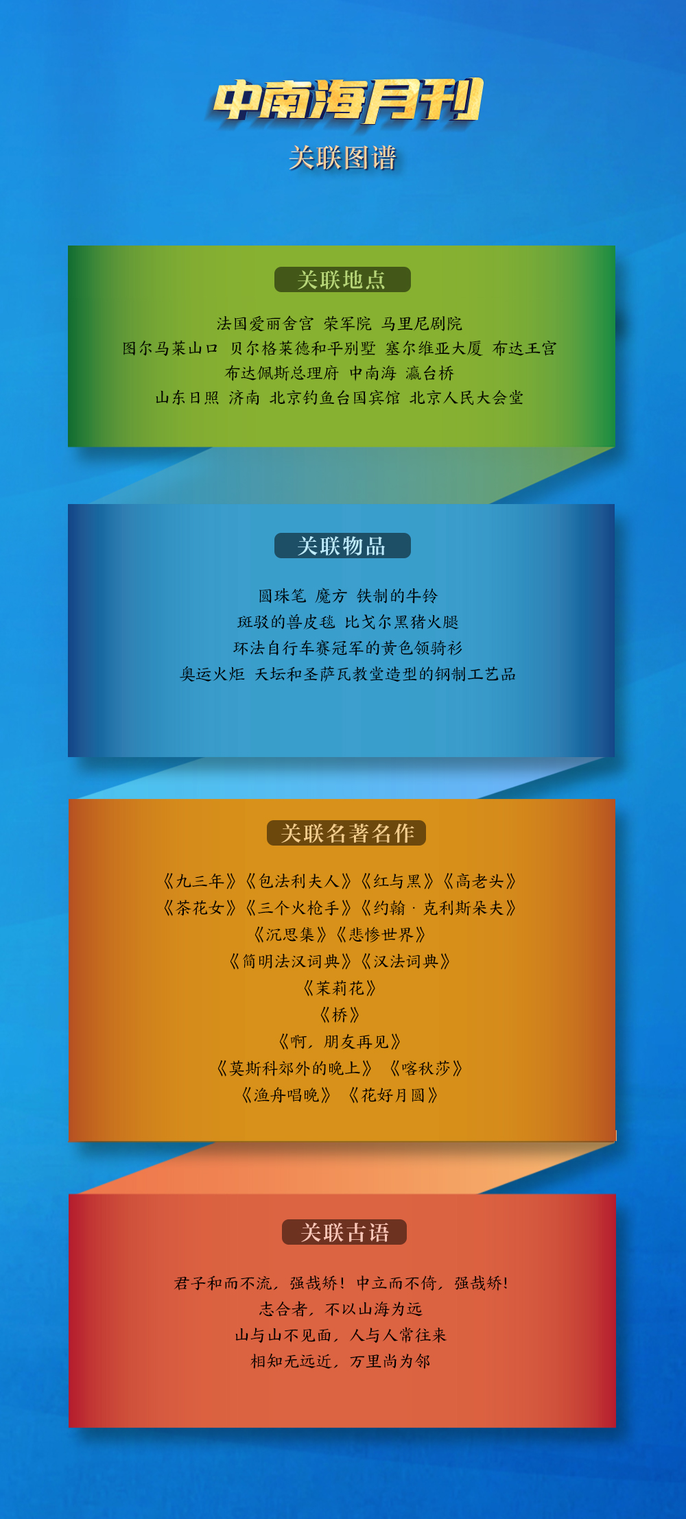 文明如水,為全球發(fā)展提供精神滋養(yǎng)。透過央視網(wǎng)“I學習”數(shù)據(jù)庫生成的關(guān)聯(lián)圖譜,一個個關(guān)聯(lián)地點、關(guān)聯(lián)物品、關(guān)聯(lián)名著名作等勾勒出清晰鮮明的文明互鑒印記。