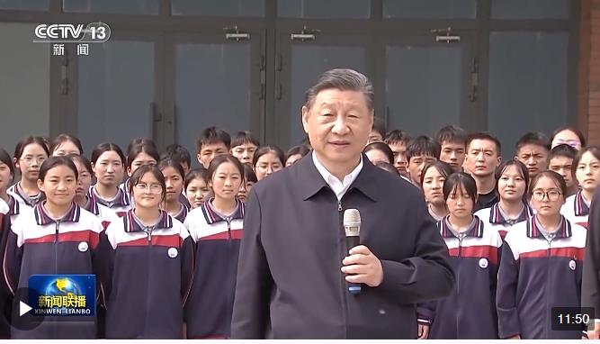 在高一(1)班教室,總書記說,要把鑄牢中華民族共同體意識作為學校思政課的一個重點,講好中國共產(chǎn)黨和中國特色社會主義的故事,講好新時代以中國式現(xiàn)代化全面推進強國建設(shè)、民族復興偉業(yè)的故事,講好中華民族共同體和民族團結(jié)進步的故事,把中華民族共同體意識從小就植入孩子們的心靈。