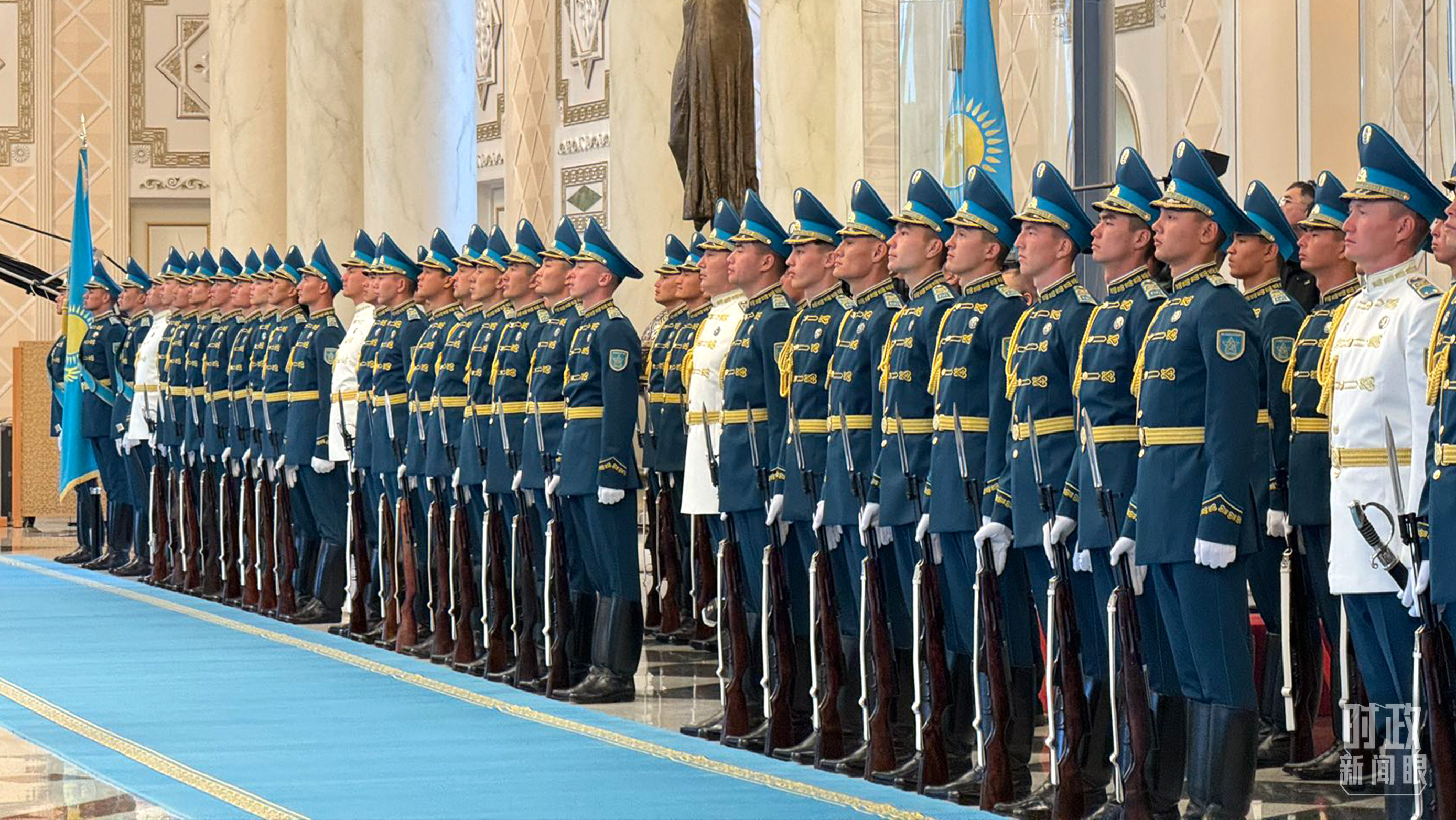 哈薩克斯坦總統(tǒng)府禮兵。(總臺央視記者程鋮、蔣碩拍攝)