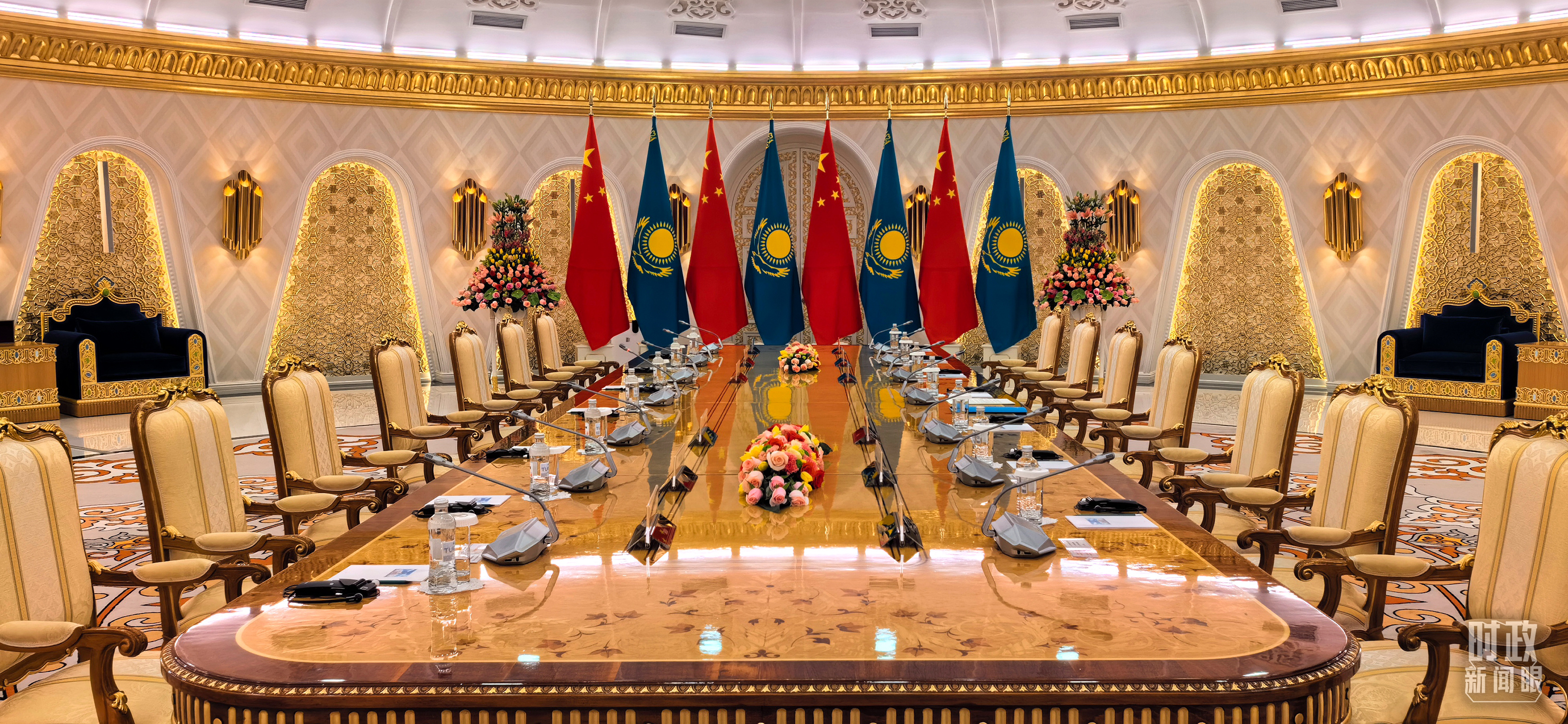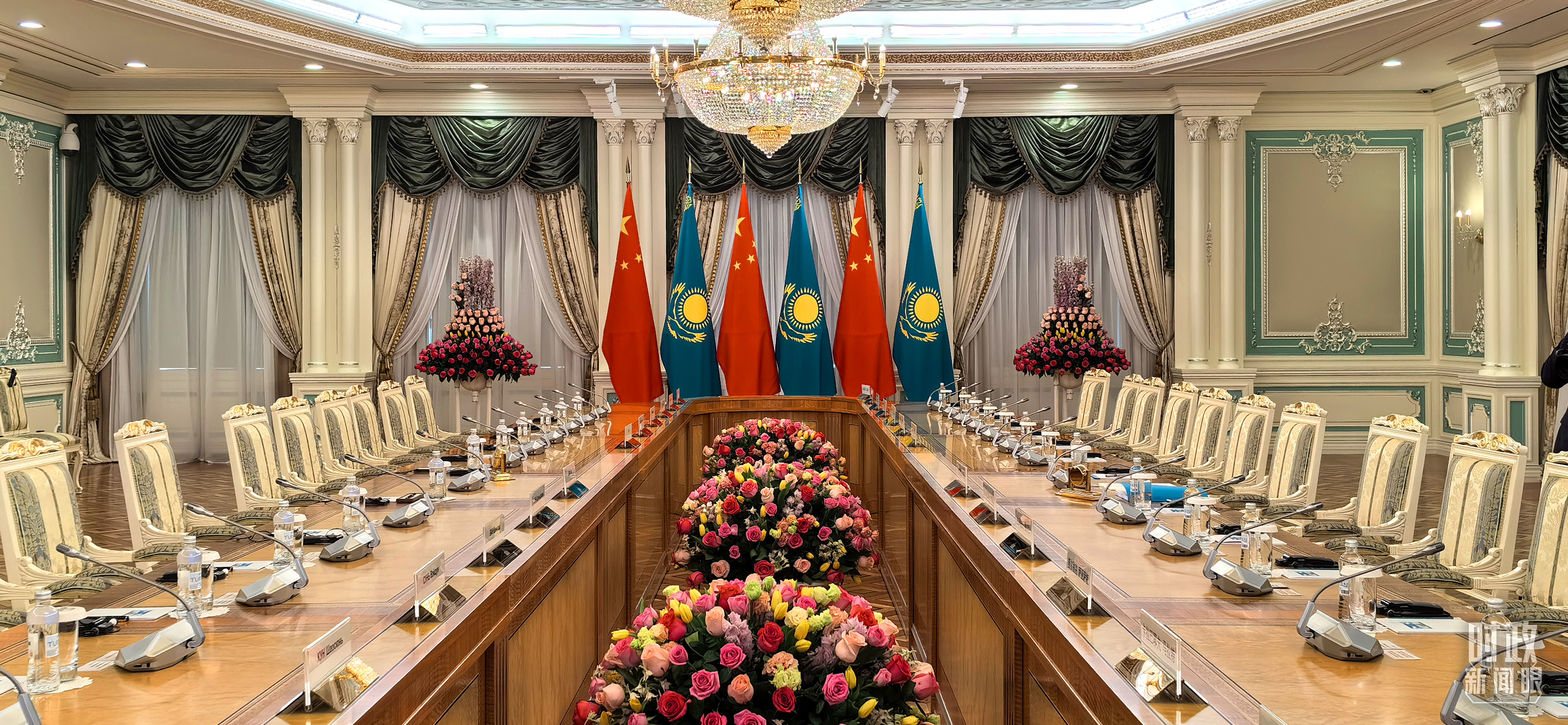 中哈元首小范圍會談開始前的現(xiàn)場。(總臺央視記者劉岳拍攝)