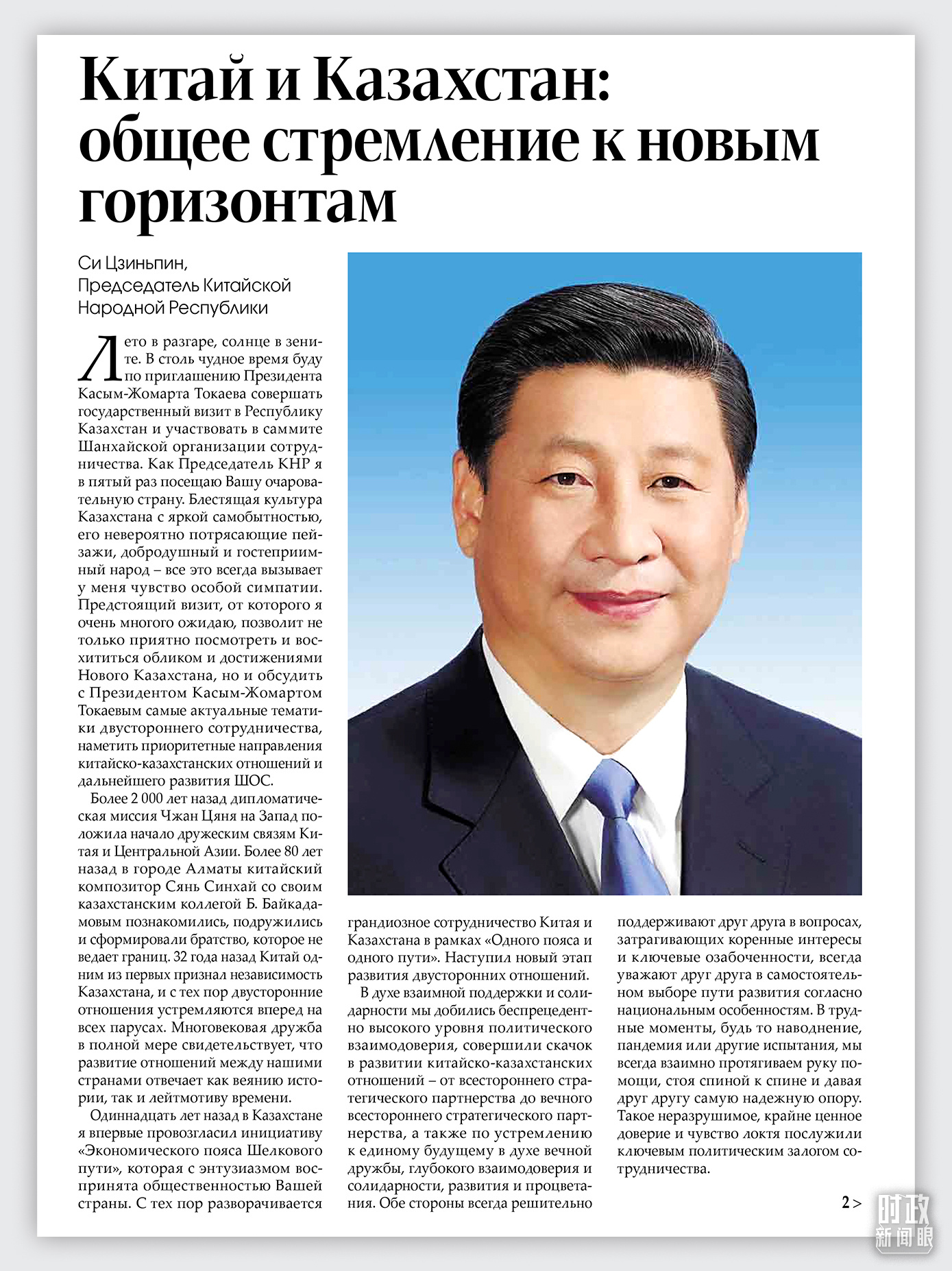 習(xí)近平主席在《哈薩克斯坦真理報》上發(fā)表的題為《同心篤行 續(xù)寫中哈關(guān)系新篇章》的署名文章。(總臺記者張譽(yù)耀提供)