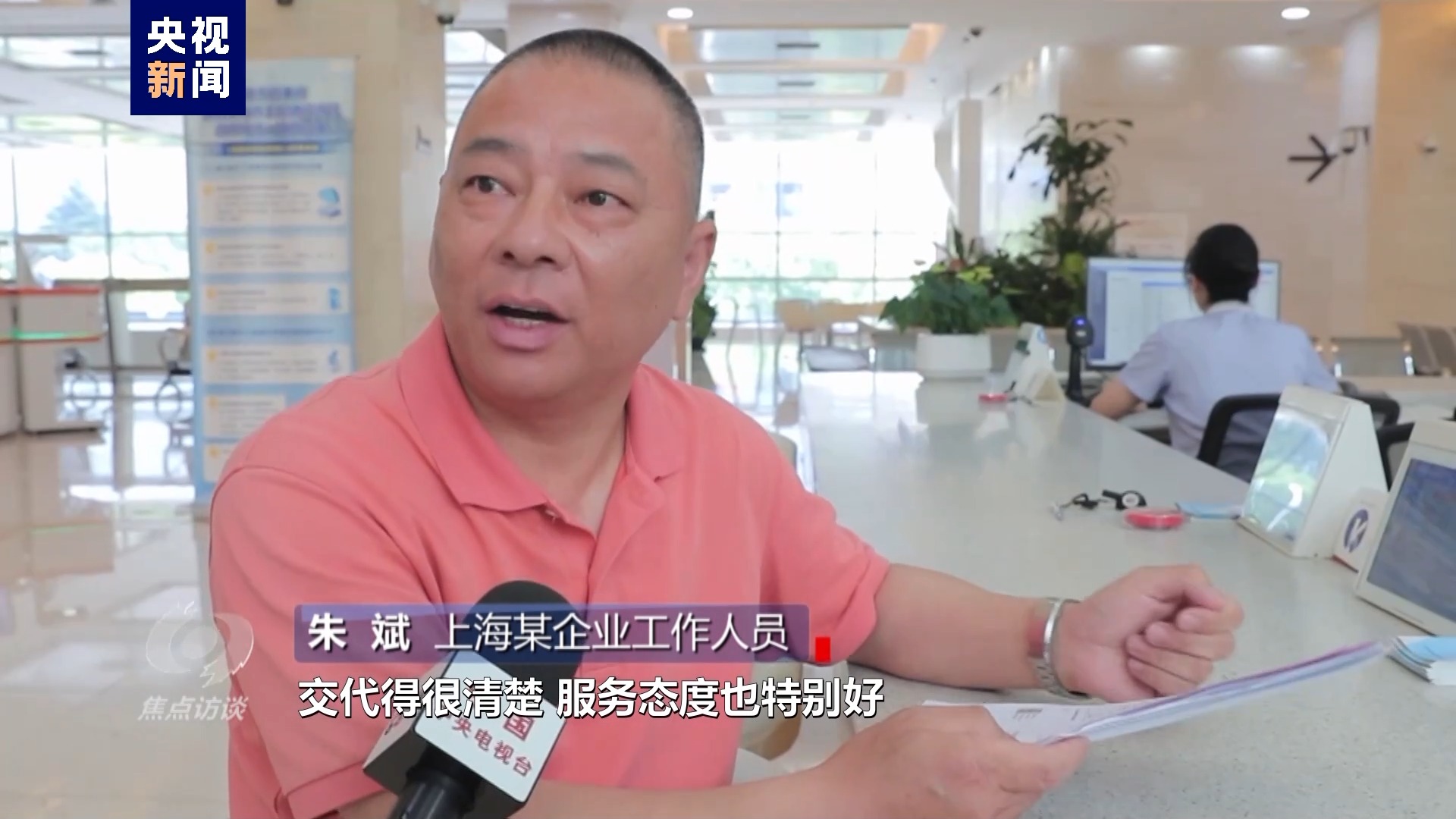 上海某企業(yè)工作人員 朱斌:對(duì)我們企業(yè)來辦事、來辦證交代得很清楚,服務(wù)態(tài)度也特別好。
