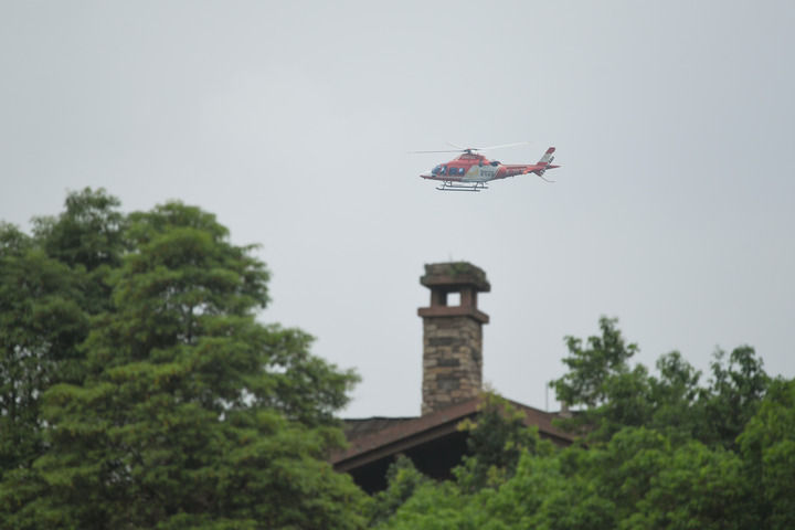 這是2024年6月20日在成都都江堰市青城山起降點拍攝的參與驗證飛行的載人直升機(jī)。
