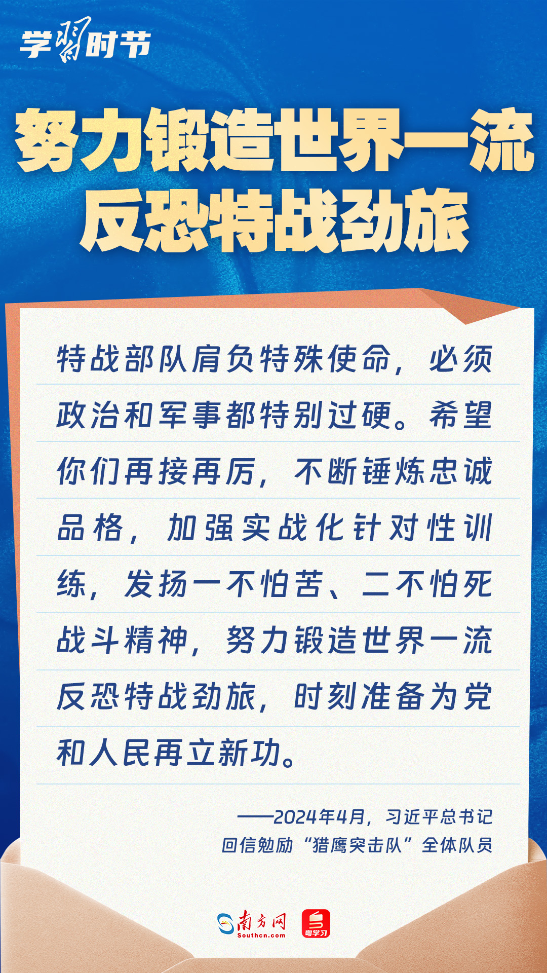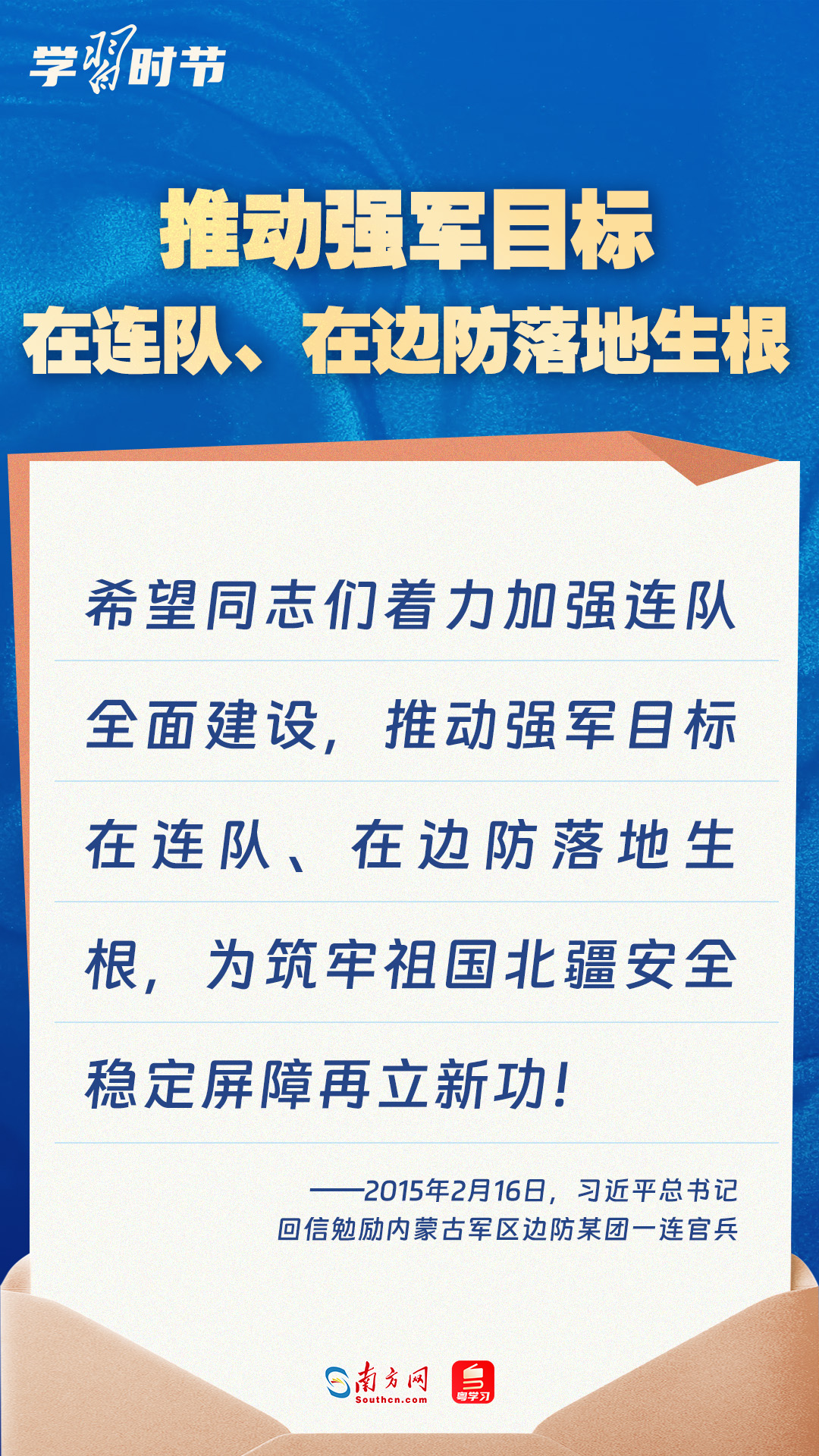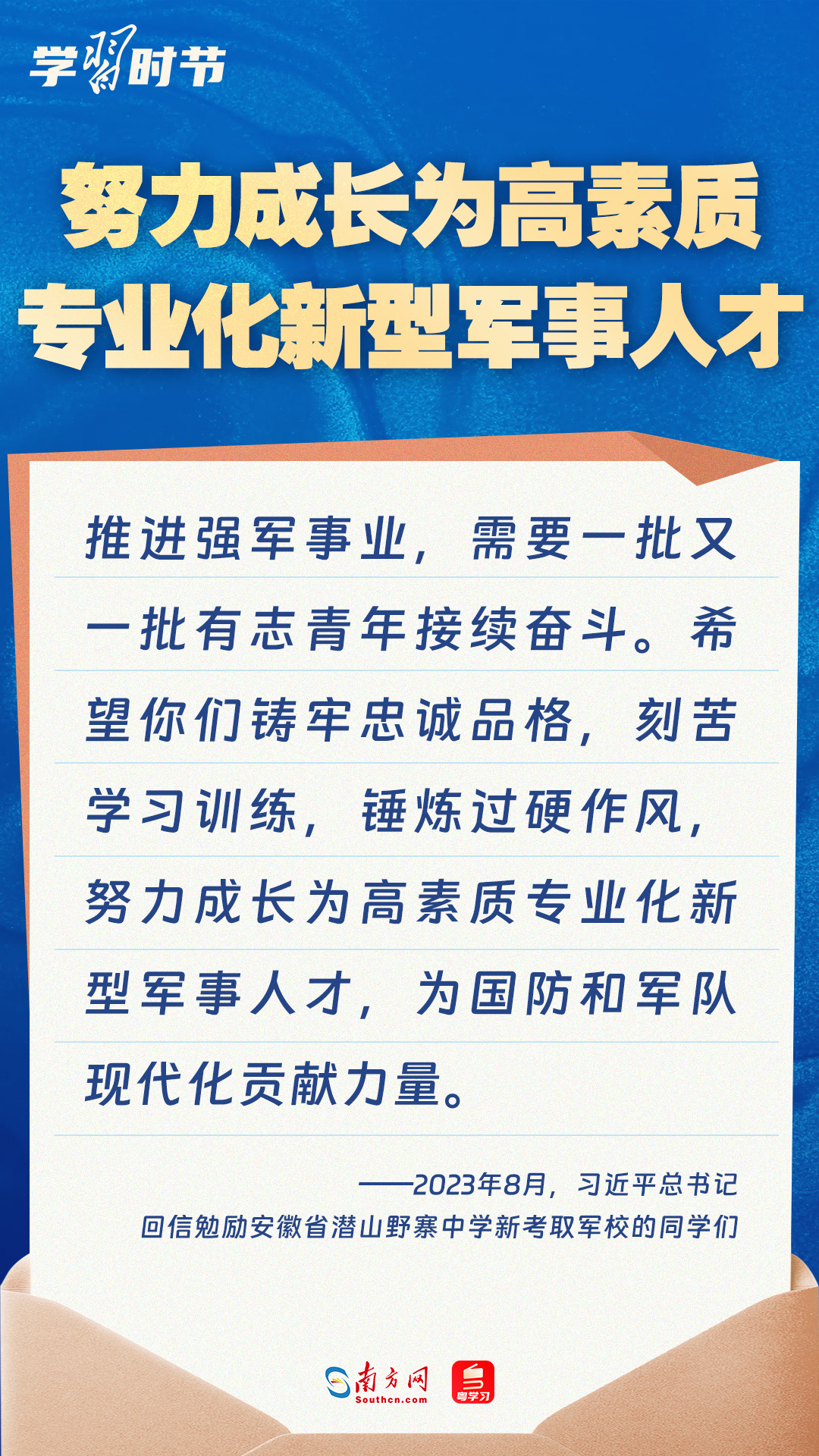 強(qiáng)國(guó)必須強(qiáng)軍,軍強(qiáng)才能?chē)?guó)安。黨的十八大以來(lái),習(xí)近平總書(shū)記始終牽掛一線(xiàn)官兵冷暖,高度重視我軍院校教育和人才培養(yǎng)工作,多次給部隊(duì)官兵、軍校學(xué)員等回信。讓我們一起重溫總書(shū)記的諄諄寄語(yǔ)!