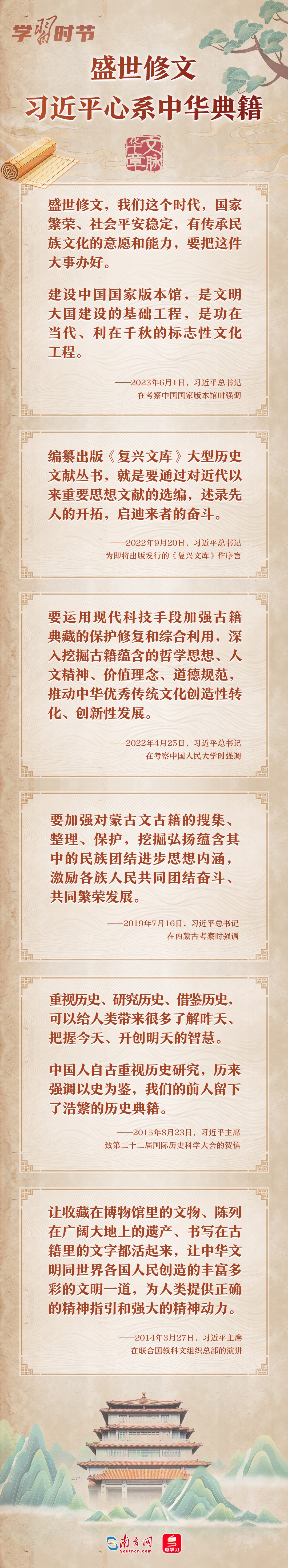 黨的十八大以來,習近平總書記曾在多個重要場合指出典籍收藏和研究的重要性。讓我們通過一張長圖,回顧總書記關于中華典籍的重要論述。